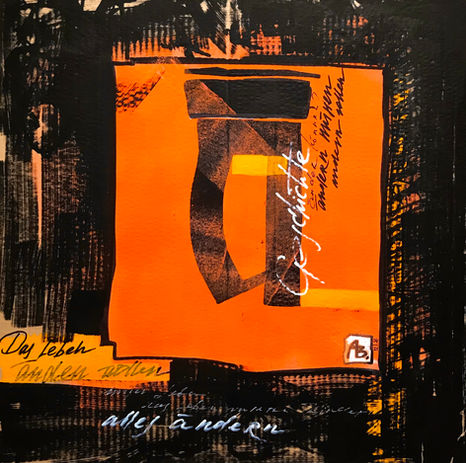 Ein abstraktes Mixed-Media-Werk mit Elementen aus Art brut, Informel und expressionistischer Grafik.
