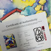 Tief darin stand ein kleines Häuschen, dessen rote Dachkante wie ein geheimnisvolles Zeichen aus dem bunten Blättermeer ragte. Rundherum wuchsen Bäume mit gelbem Laub, Büsche in Blau und Violett, Formen und Farben wie aus einem Traum gemalt.