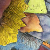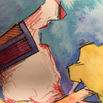 Ein fauvistisch-expressionistisches Aquarell mit illustrativer Linienführung und semi-abstrakter Landschaftsdarstellung.